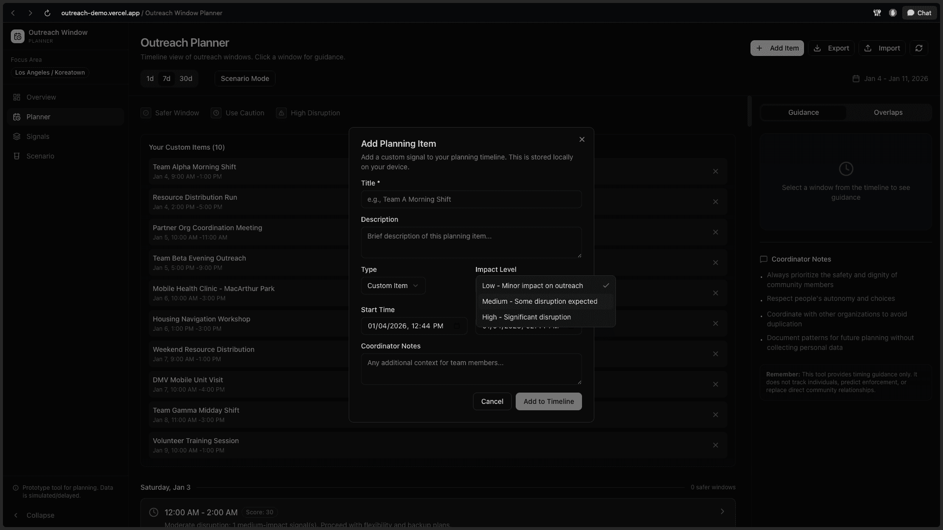 Reduces missed outreach and unsafe encounters for organizations assisting homeless in LA.