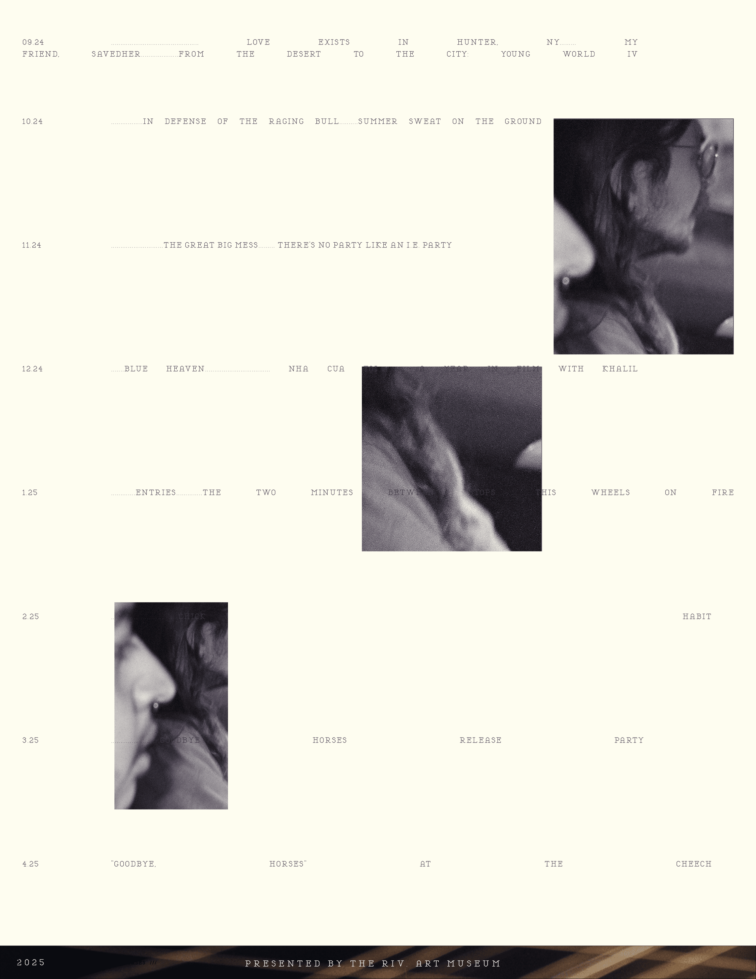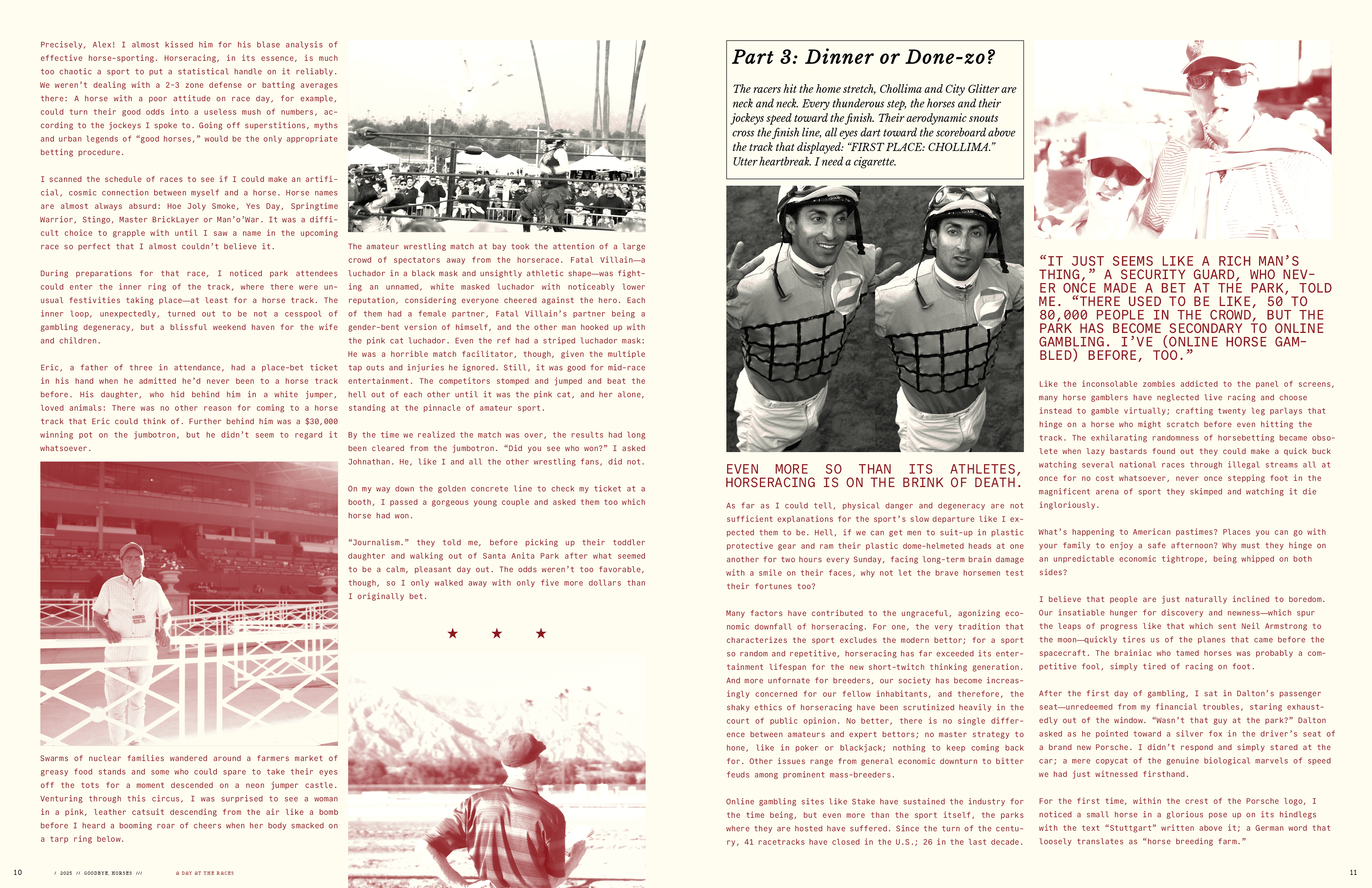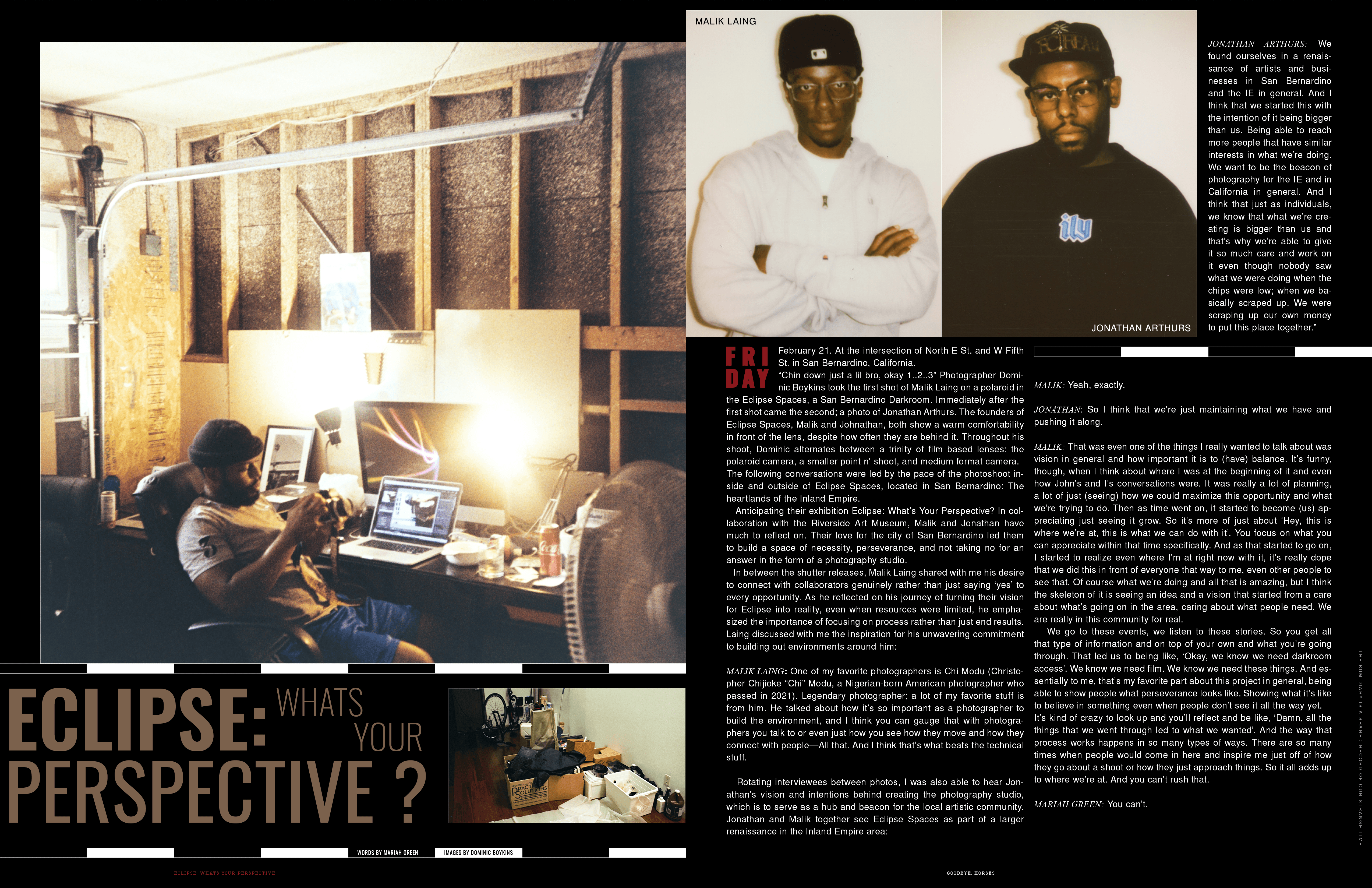 Mariah explained to our team in a Zoom that she was hosting an April exhibition called “Eclipse: What’s Your Perspective” and that she would also be interesting in contributing a 4-page written piece to our zine which would accompany 16 pages of whatever we want. Thus, birthed “Goodbye, Horses”...